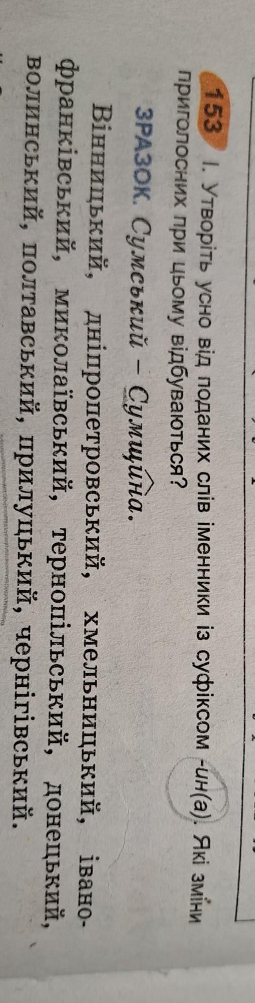 153 1. Утворіть усно від поданих слів іменники із суфіксом -ин(а). Які зміни приголосних при цьому відбуваються?