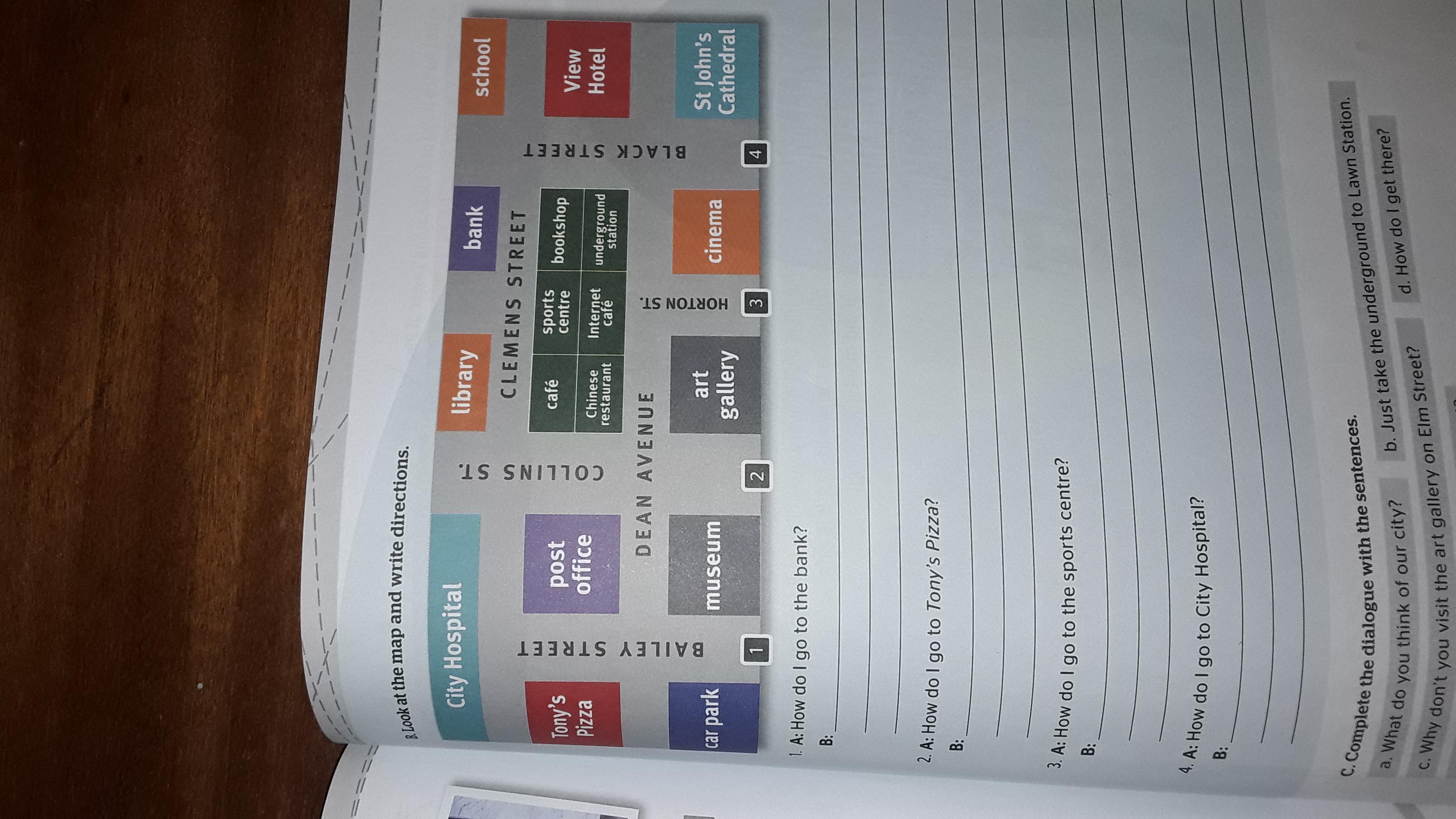 go straight by Black street, you will pass the book shop, turn left to the Chelmens st. Continue walking, you will pass bank and library, turn right to the Collons street and you will see the City hospital.