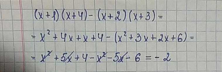 Ответ:(x+1)(x+4)-(x+2)(x+3)=0