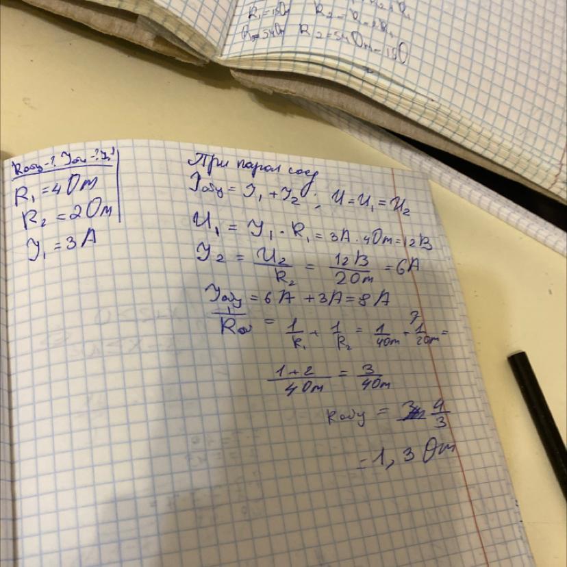 Резистори з опорами 4Ом і 2Ом з’єднані паралельно. Визнач загальний опір ділянки кола, силу струму в другому резисторі й на всій ділянці кола, якщо сила струму в першому резисторі дорівнює 3А.
