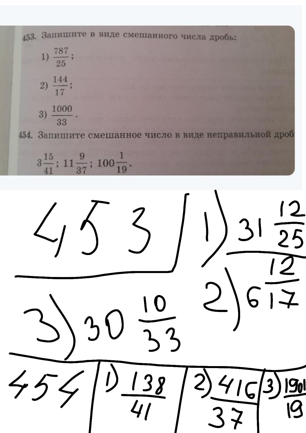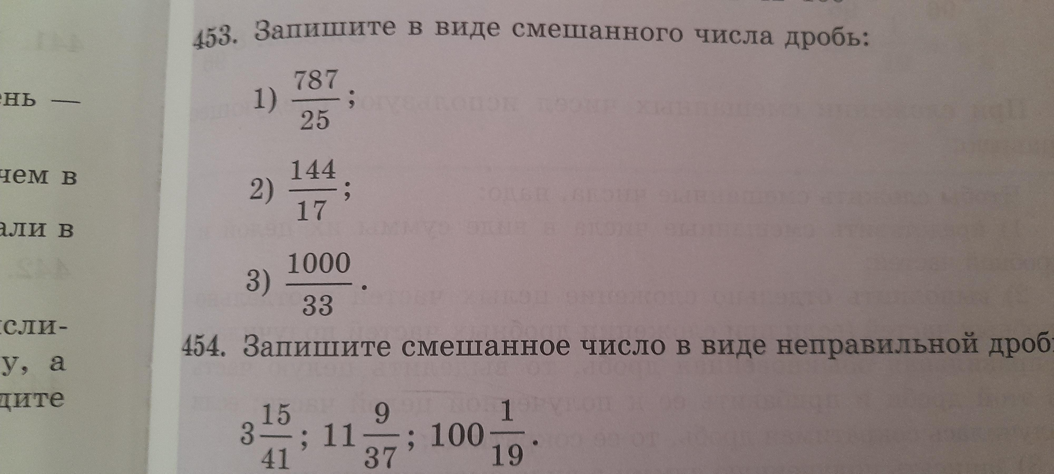 Запишите в виде смешанного числа дробь №453 и 454 запишите смешанное число в неправильную дробь