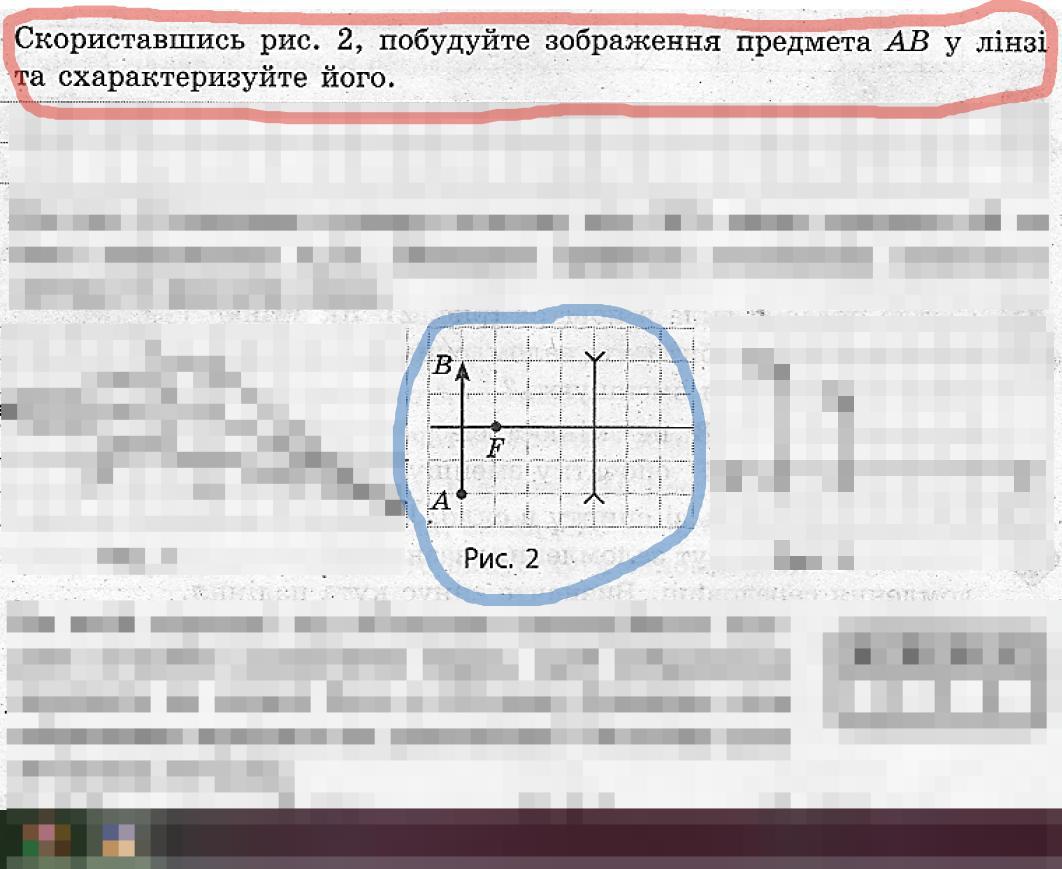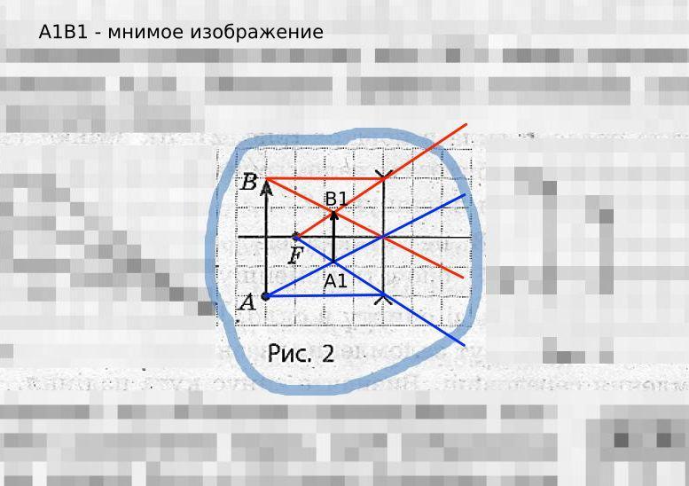 Чтобы построить изображение указанного предмета найдем изображение его двух крайних точек A и B.