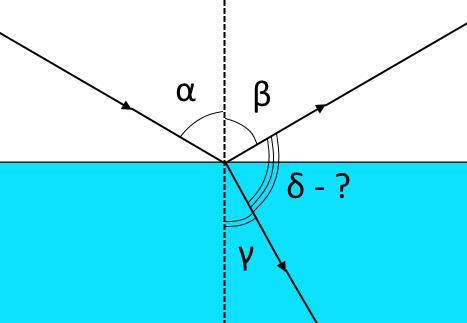 2. Світловий промінь, падаючи на межу двох середовищ, частково відбивається і частково проходить у друге середовище. Кут між падаючим і відбитим променями 120. Визначити кут між відбитим і заломленим променями, якщо показник заломлення другого середовища відносно першого√3.