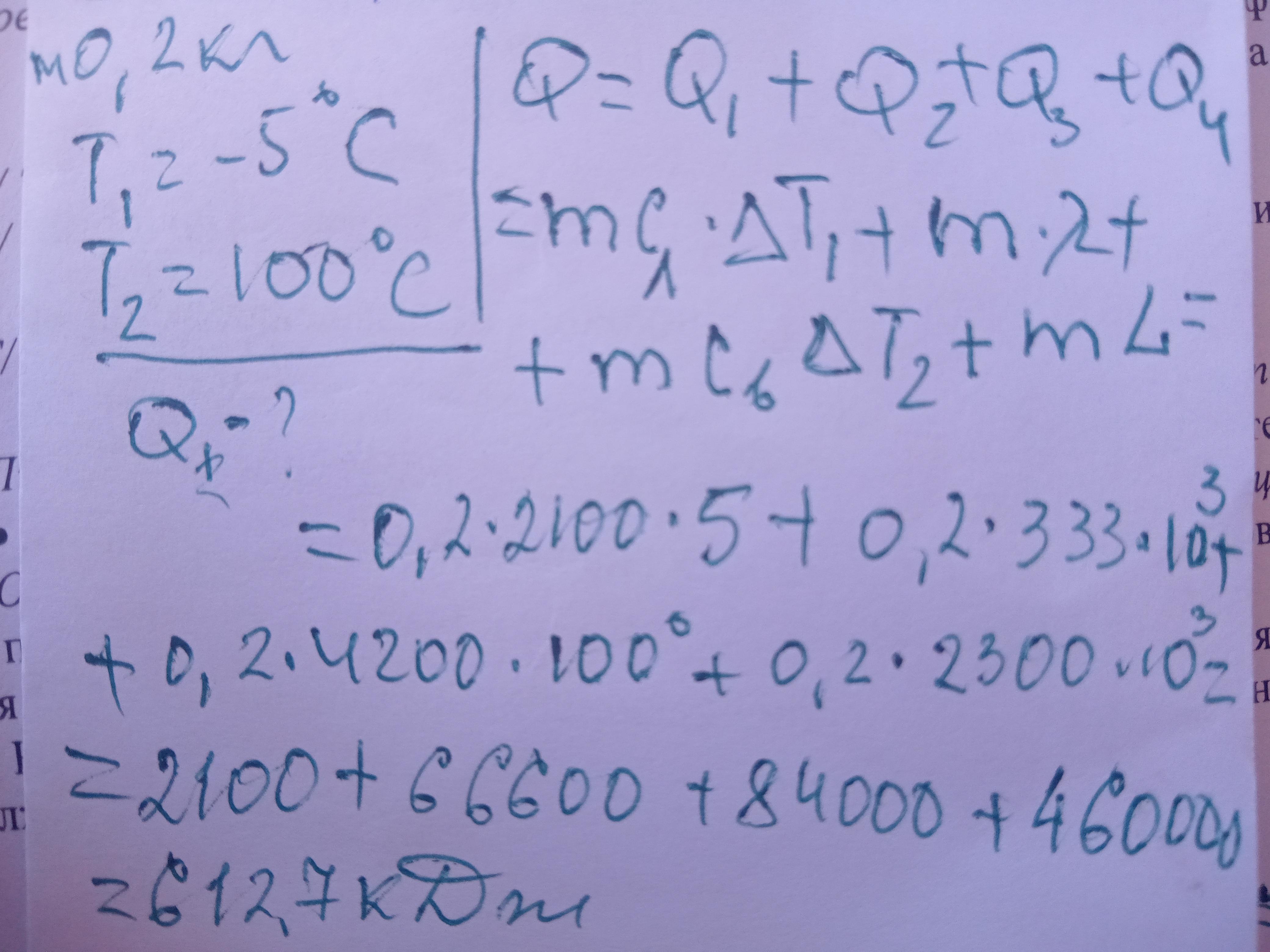 200 грам льоду при температурі -5 градусів перетворили на пару, яка кількість енергії витрачена.