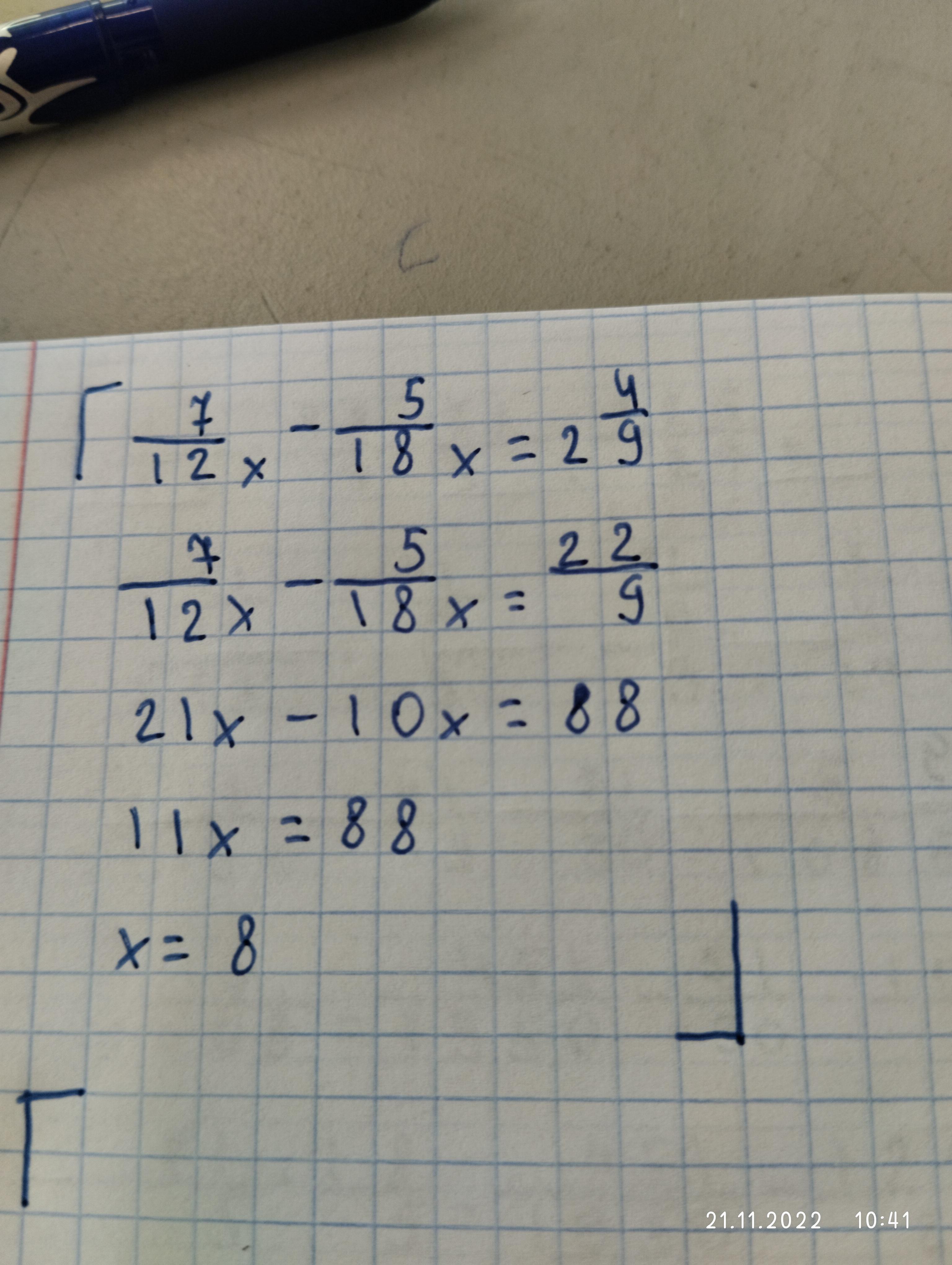 7/12х - 5/18х = 2 4/9