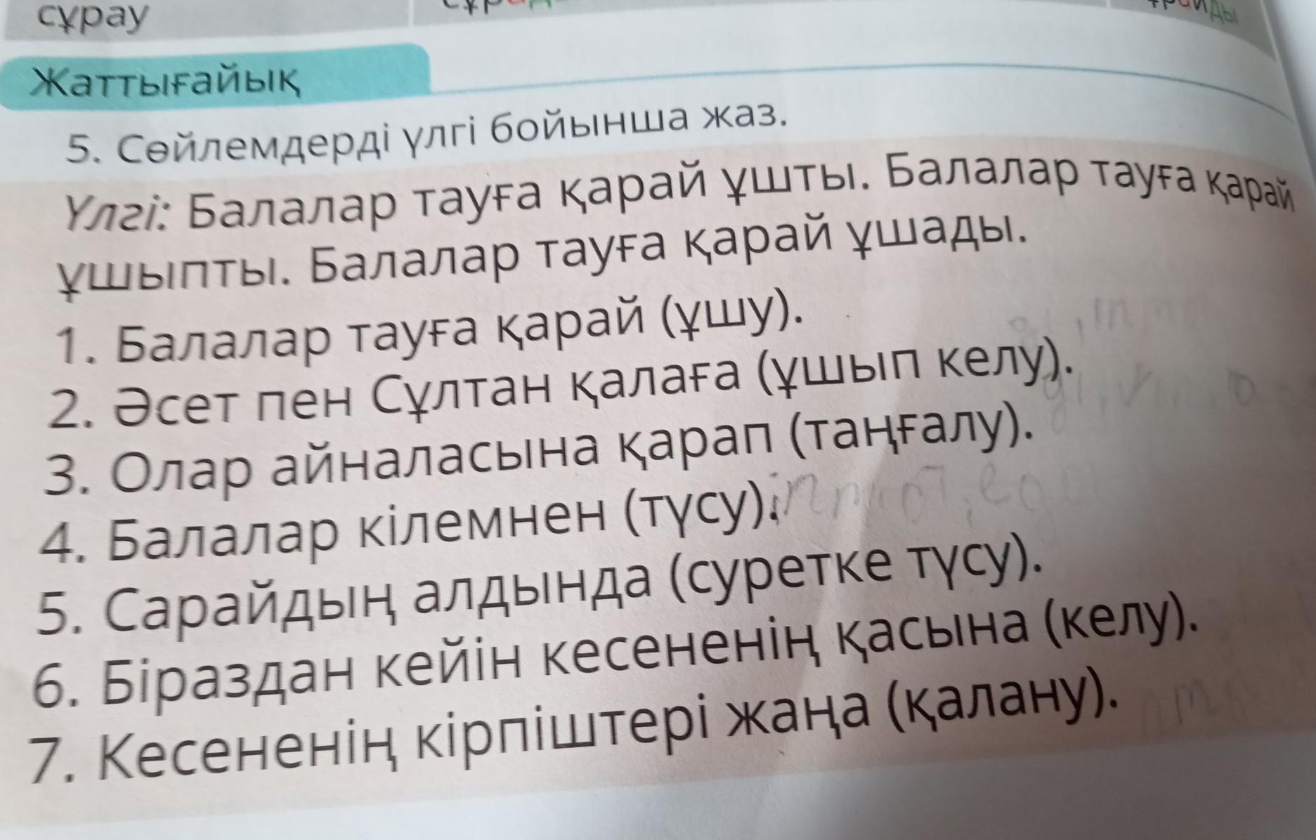 5. Сөйлемдерді үлгі бойынша жаз.