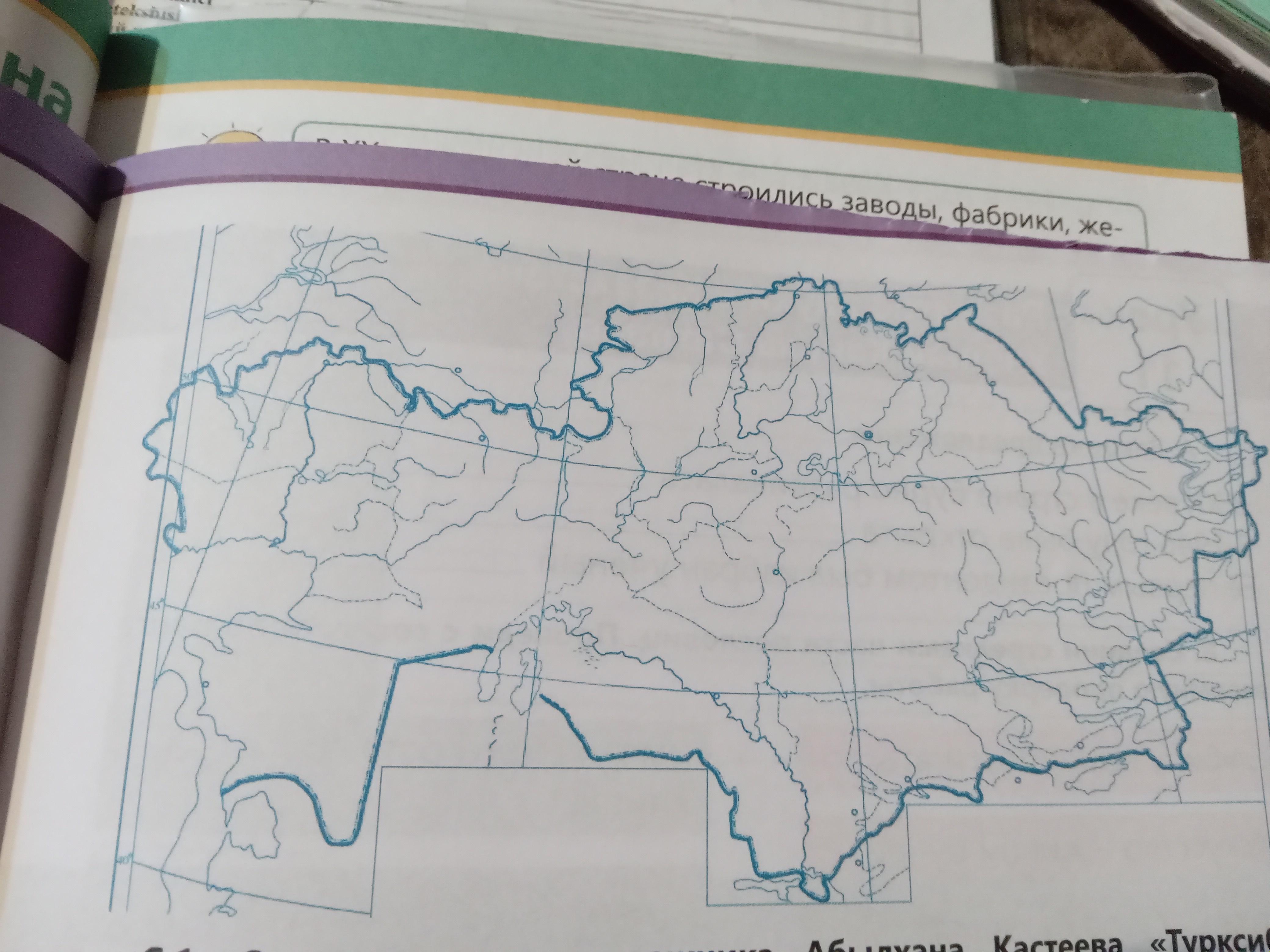 Обозначь пунктирной линией Туркестано - Сибирскую железную дорогу (ТУРКСИБ).