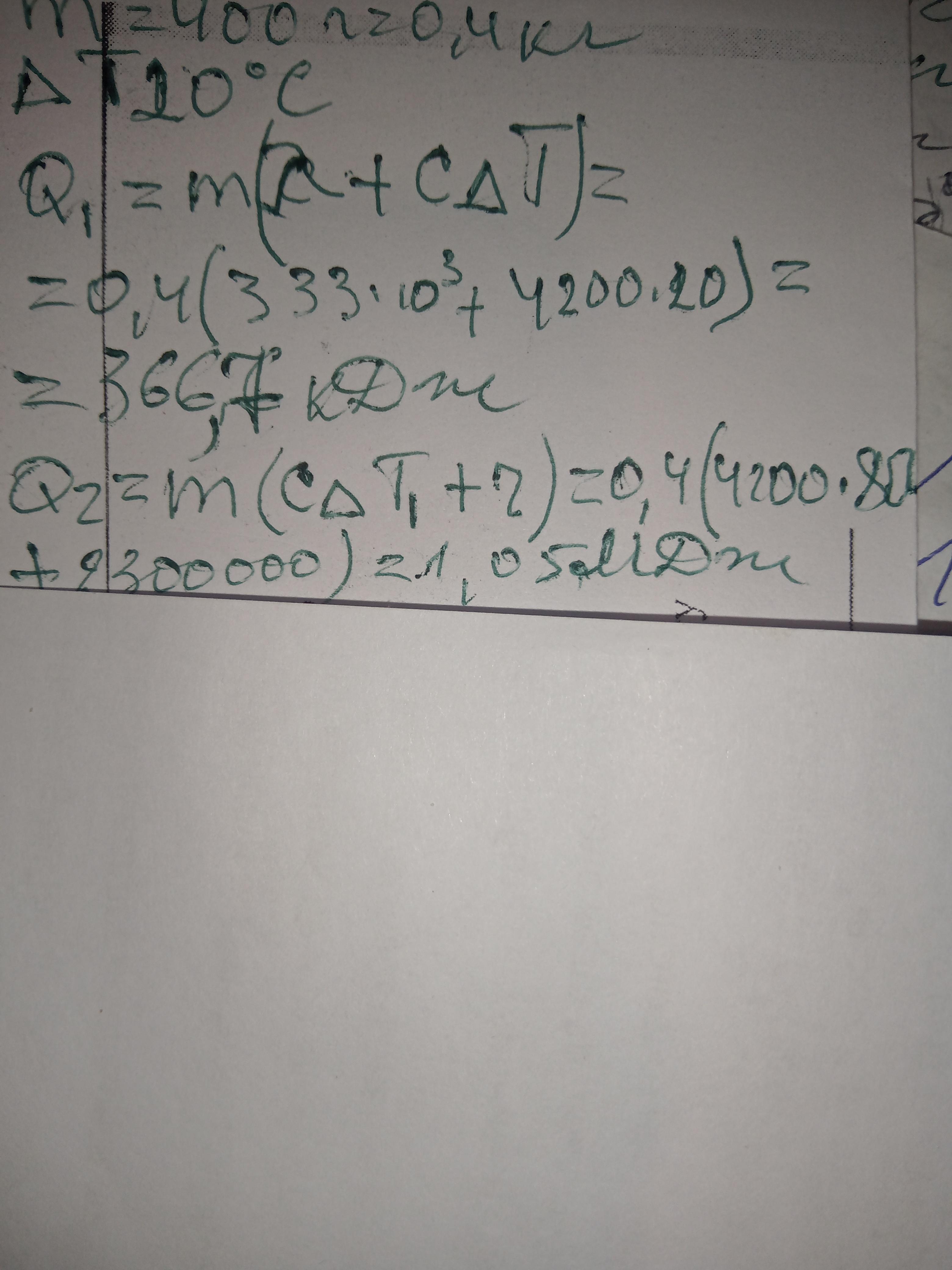 Яка кількість теплоти витрачається на нагрівання 400 г льоду від 0°С до 20°С?