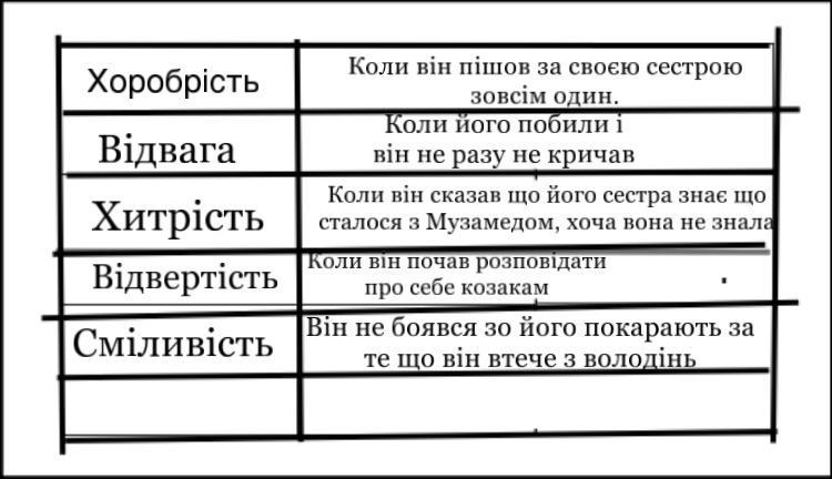 Накресліть в робочому зошиті таблицю, у якій ліворуч напиши риси зарактеру павлуся, а праворуч епізоди, у яких вони розкриваються