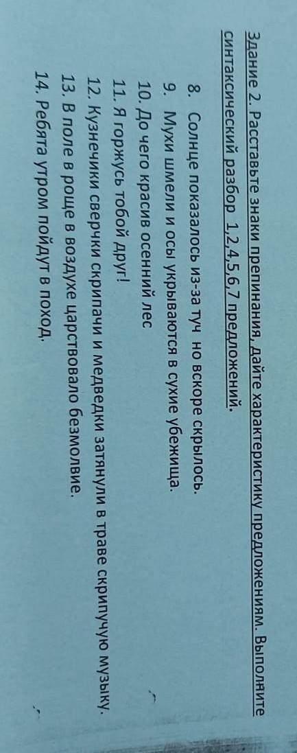 Ответ: Солнце показалось из-за туч, но вскоре скрылось. Мухи, шмели и осы...