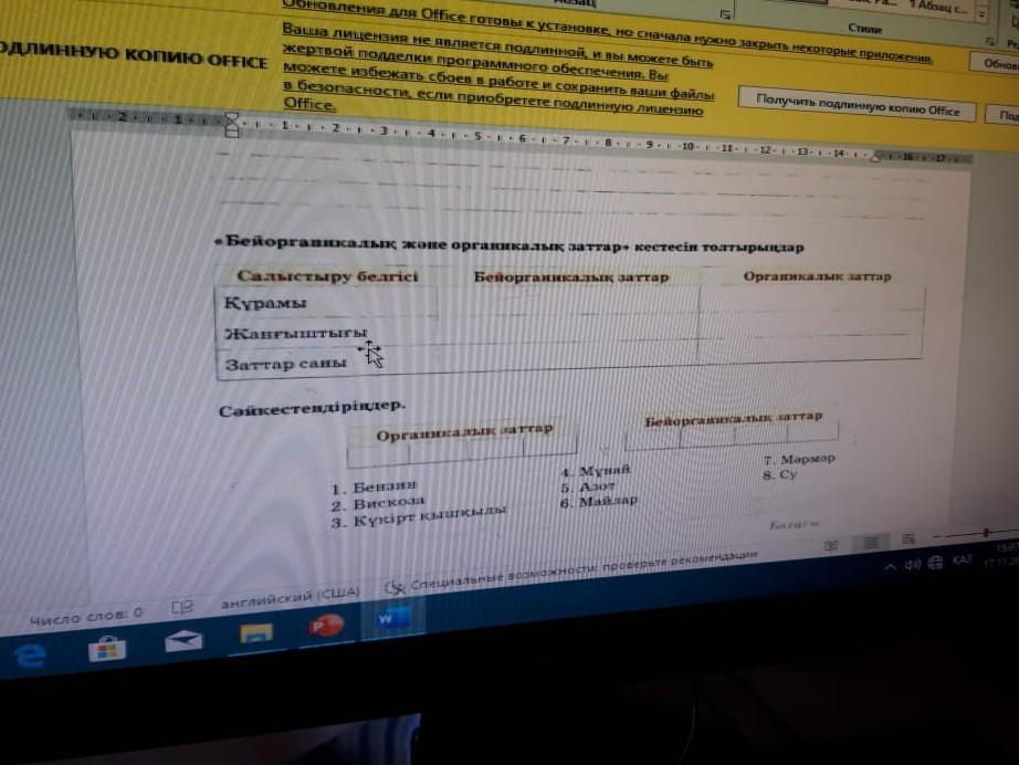 Бейорганикалық заттар: вискоза, азот, мәрмәр, су