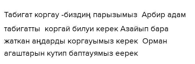 7-тапсырма. Ауыспалы осы шақ түрлерін қатыстырып, «Табигатт қорғау – парызымыз>> тақырыбына эссе жазындар. тасiлi аркылы сұрақтарга жayan(100-120)Даю 50 балов