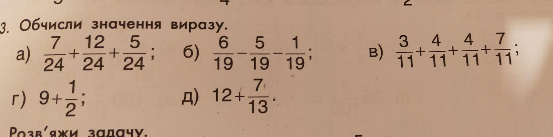 а) 1, б) 0, в)1 7/11 г) 9 1/2, д) 12 7/13,
