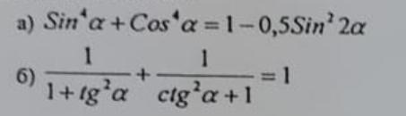 б) cos^2(a) + sin^2(a) = a