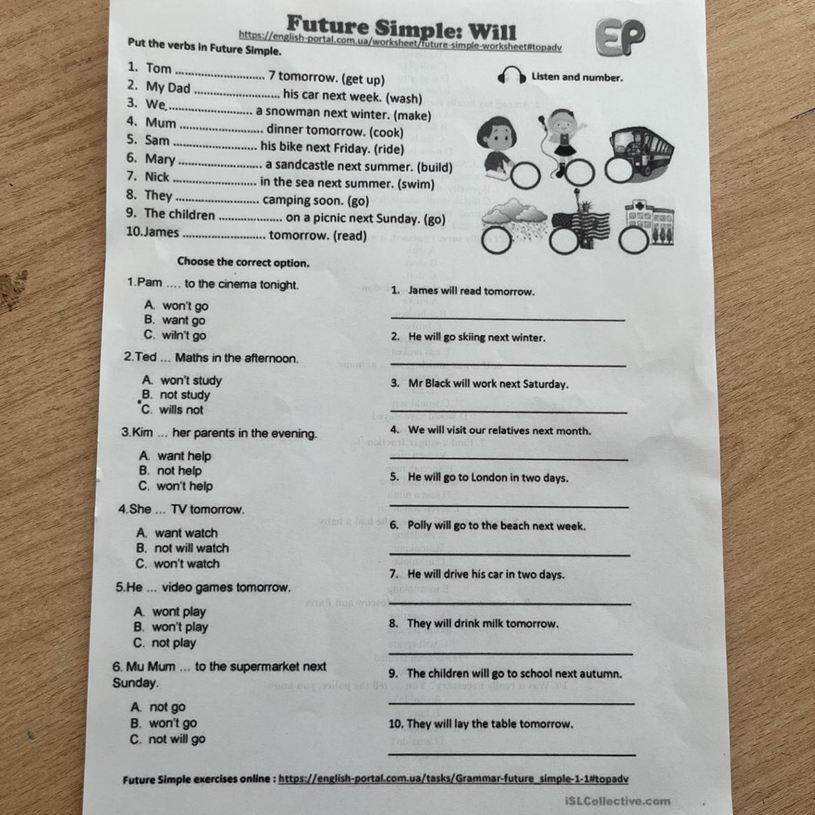 “Choose The Correct Option” 1 Pam Won't Go, 2 Ted Won't Study, 3 Kim won't help her parents