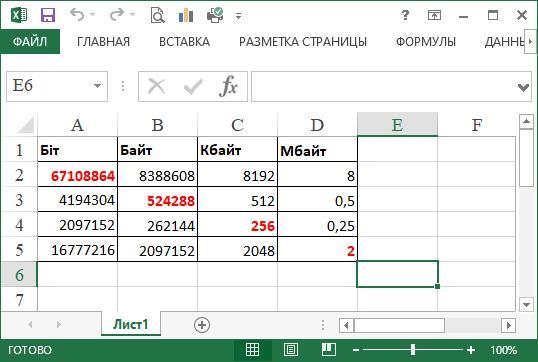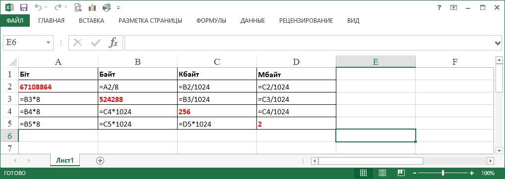 - в ячейку C5 вводим формулу =D5*1024 (скрин 2)