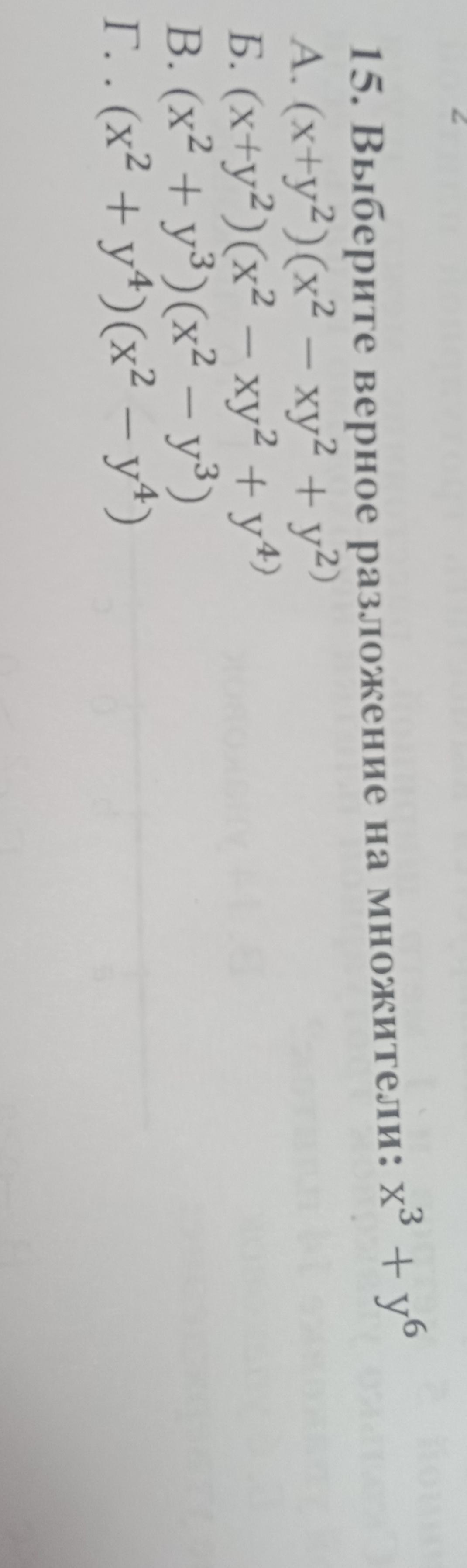 Б) (х+y2)(x2-xy2+y2)=x3 -x2y2 +xy4 +x2y2 -xy4 +y6 = x3 +y6