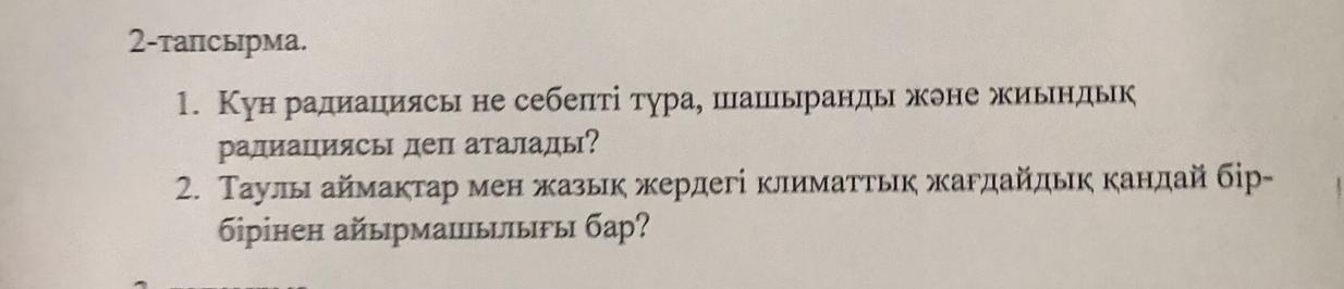 2. Таулы аймактар мен жазык жердегi климаттық жағдайдык кандай бiр-