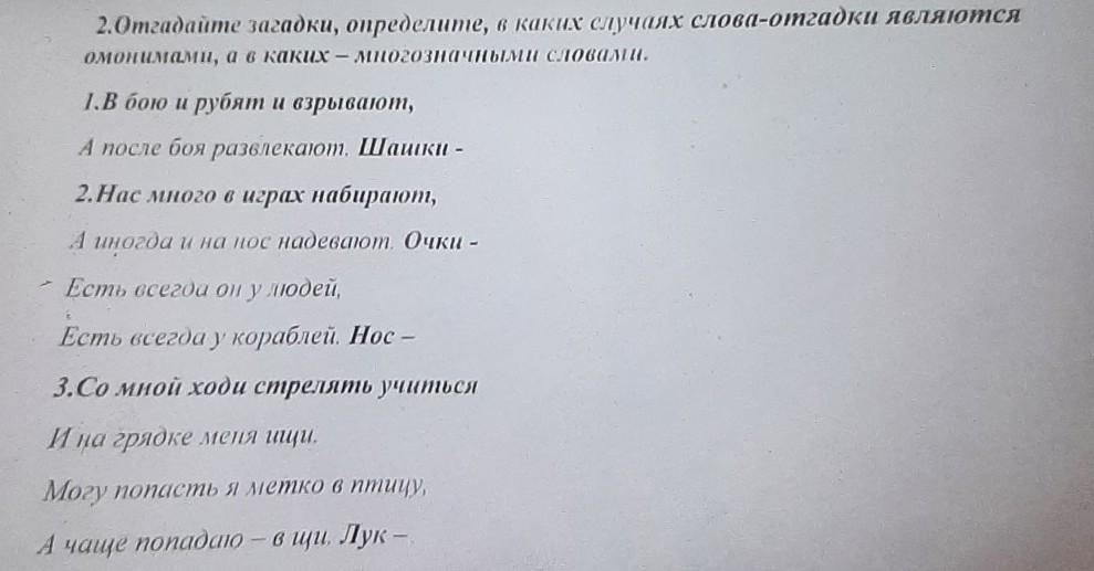 Определите, какие слова в отгадках являются омонимами, а какие - многозначными.