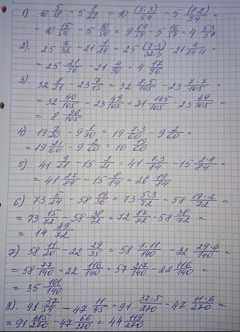 номер 483 выполните действия первое 10 5/18 - 5 8/27 второе 25,7/32 - 21 1/24 32 8/21 - 23 7/15 четвёртый 19,7 - 9 1/30 пятое 41 9/28 - 15 21пж обьесните всё как вы сделали Срочно