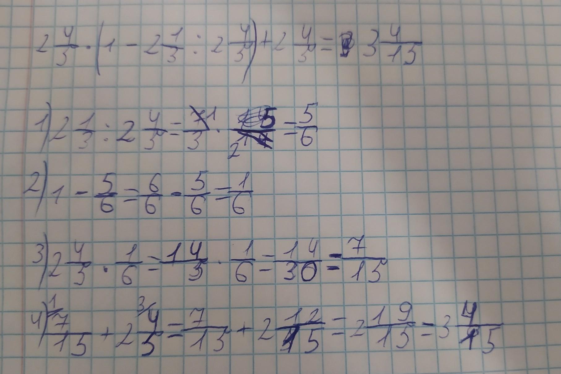 3) 2 4/5 * 1/6 = 14/5 * 1/6 = 7/5 * 1/3 = 7/15