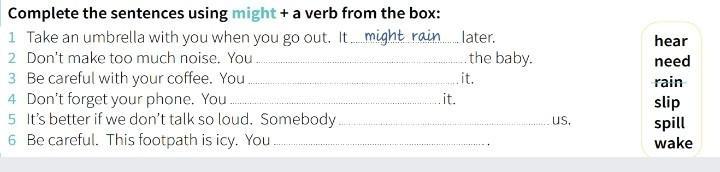 Нужно закончить предложения, используя модальный глагол might и один из глаголов справа.