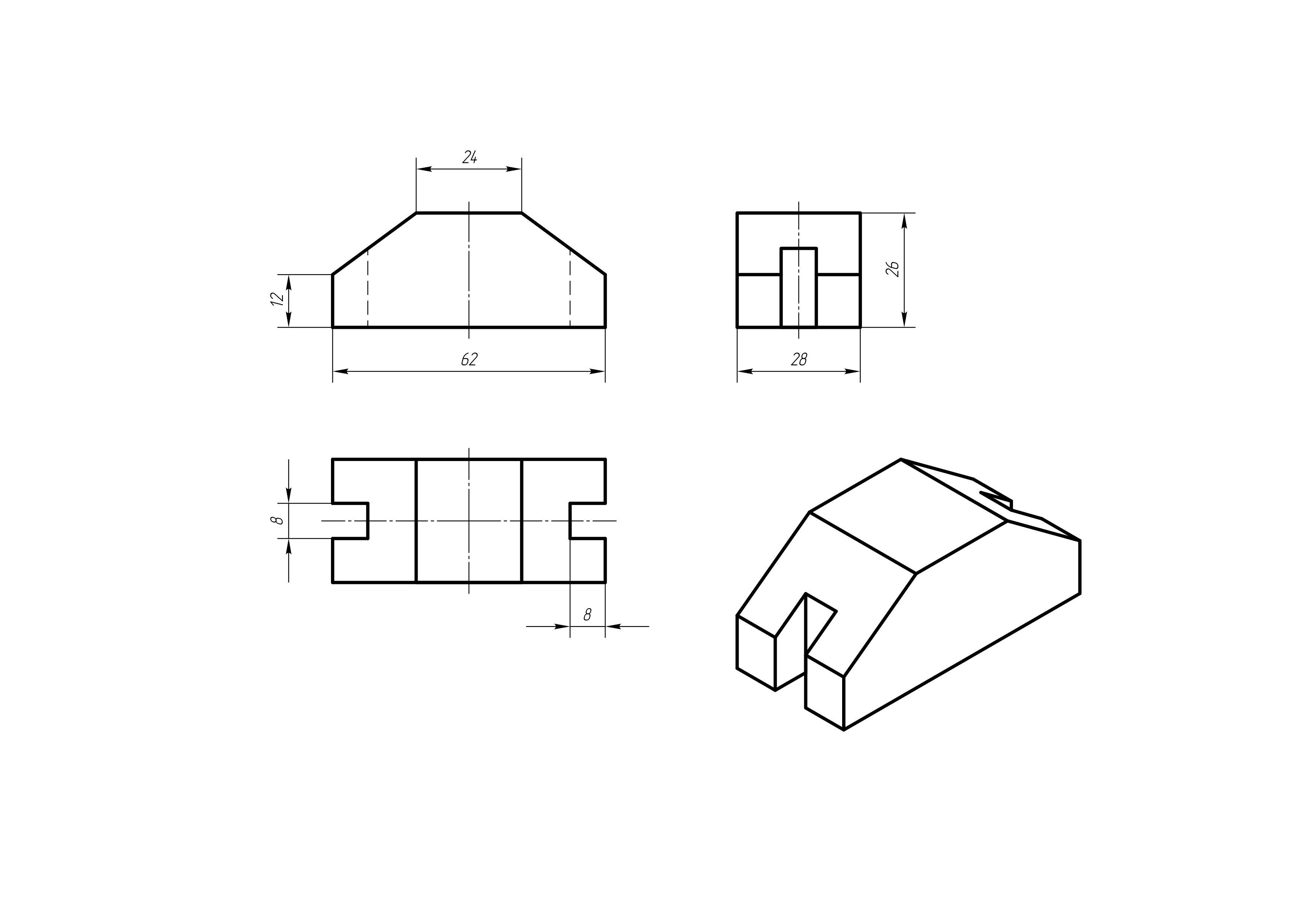 Срочно нужна помощь кто разбирается ХОРОШО В ЧЕРЧЕНИИ Построить третью проекцию модели по двум заданным,И еще построить общий чертёж детали. Первый и второй рисунок