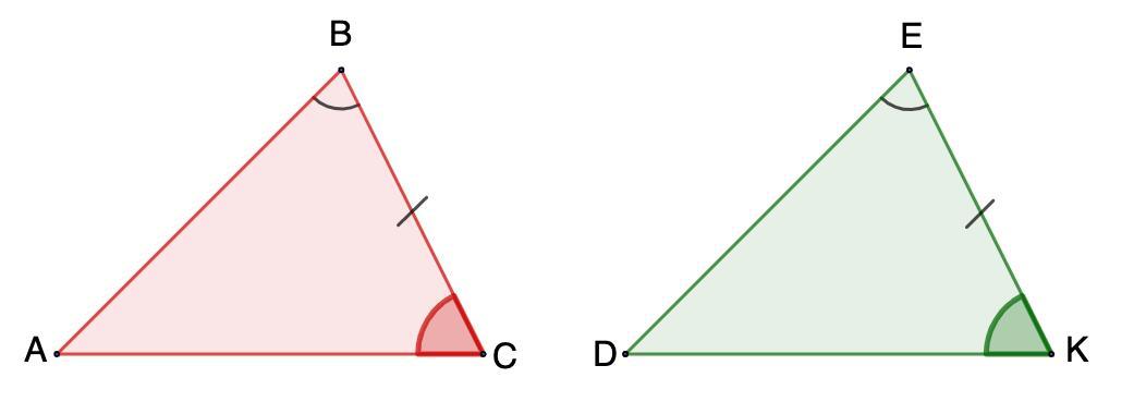 Дано треугольники ABC и DEK, причем ВС = EK и ∠B = ∠E. Равенство каких элементов надо добавить, чтобы сделать вывод о равенстве этих треугольников по второму признаку?