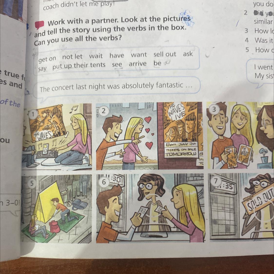 Work with a partner. Look at the pictures and tell the story using the verbs in the box. Can you use all the verbs?