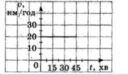 На рисунку зображено графік залежності швидкості руху, з якою їхав велосипедист, від часу. Який шлях подолав велосипедист за 45 хв?