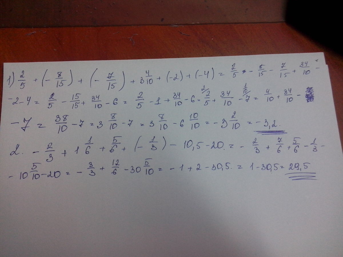 1)2-е 5-ых + (-8-мь 15-ых) + (-7-мь 15-ых) + 3,4 + (-2)+(-4)=