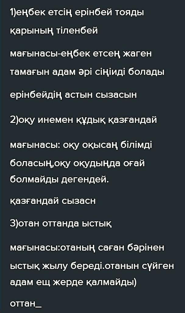 3-тапсырманы дұрыс орында? 1. Жалпылау есiмдiгiне бiр мысал. Белгiсiздiк есiмдiгiне бiр мысалдан жаз. 2.Болымсыздык есiмдiгi бар бiр макал-мәтел, Өздік есiмдiгi бар бiр макал-мател жаз. 3. Тірек сөздерді пайдаланып,3 жай сойлем кура. Тірек сөздер: сагыныш, көк аспан. ну орман, бәйтерек, туган жер, Отан.