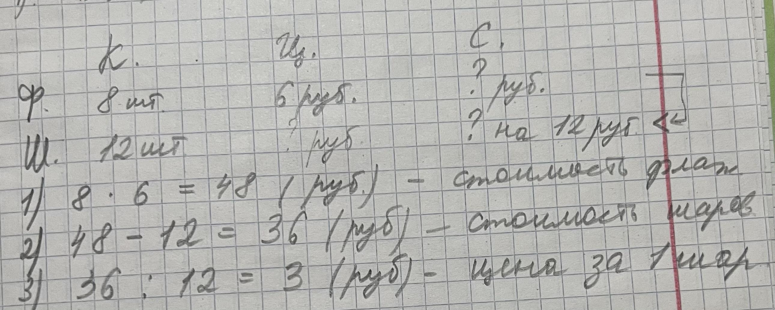 помогите пожалуйста решить контрольную 1. Задача На урок физкультуры купили 8 флажков по цене 6 руб. И 12 шаров. стоимость шаров на 12 руб меньше чем стоимость флажков найти цену шаров.(условии в табличку Цена Кол-во стоимость) 2. 2007×6 34600×4 3541×5. 26078 + 4526 - 9235. 83 руб 25 коп - 19 руб 58 коп. 9 м 52 см + 15 м 38 см. 3. решить уравнение. Xx8=285+675