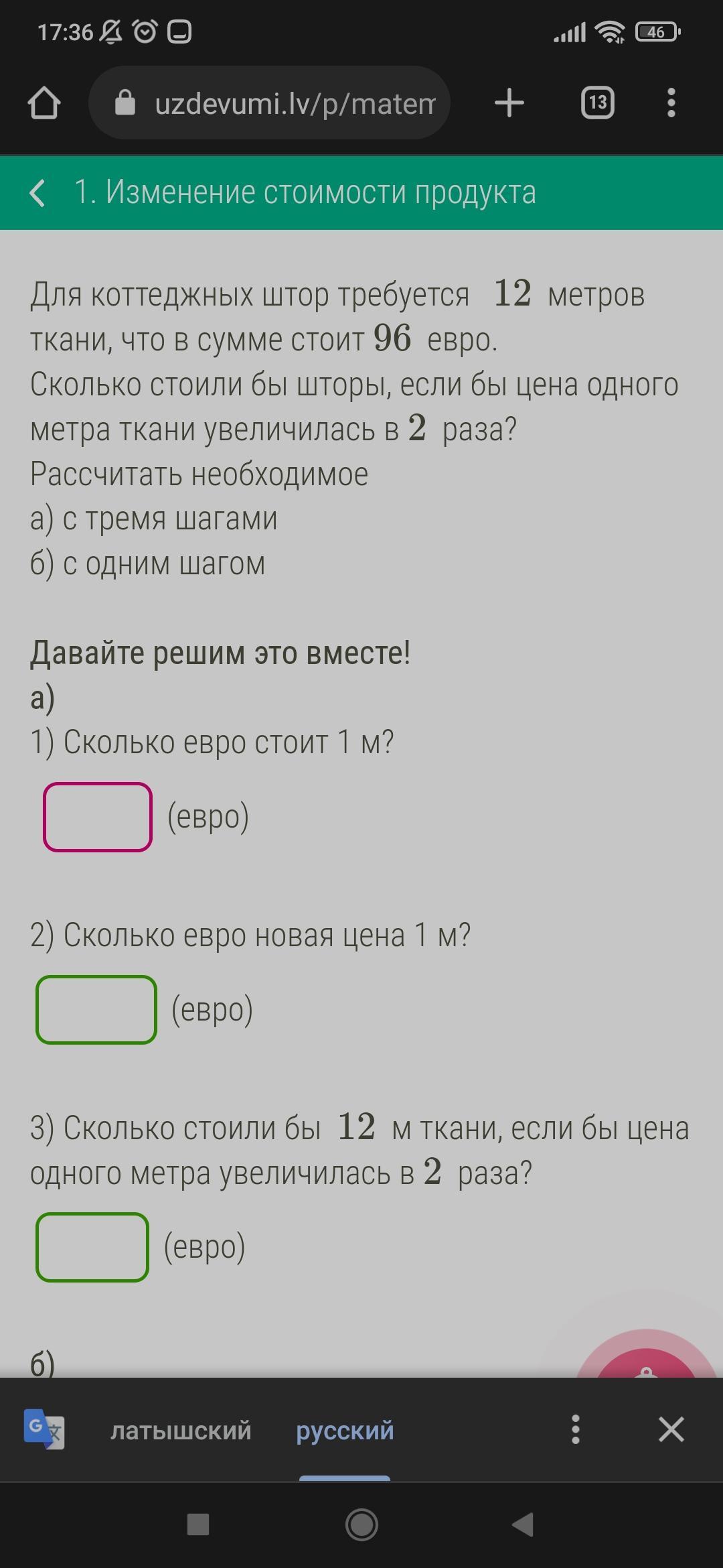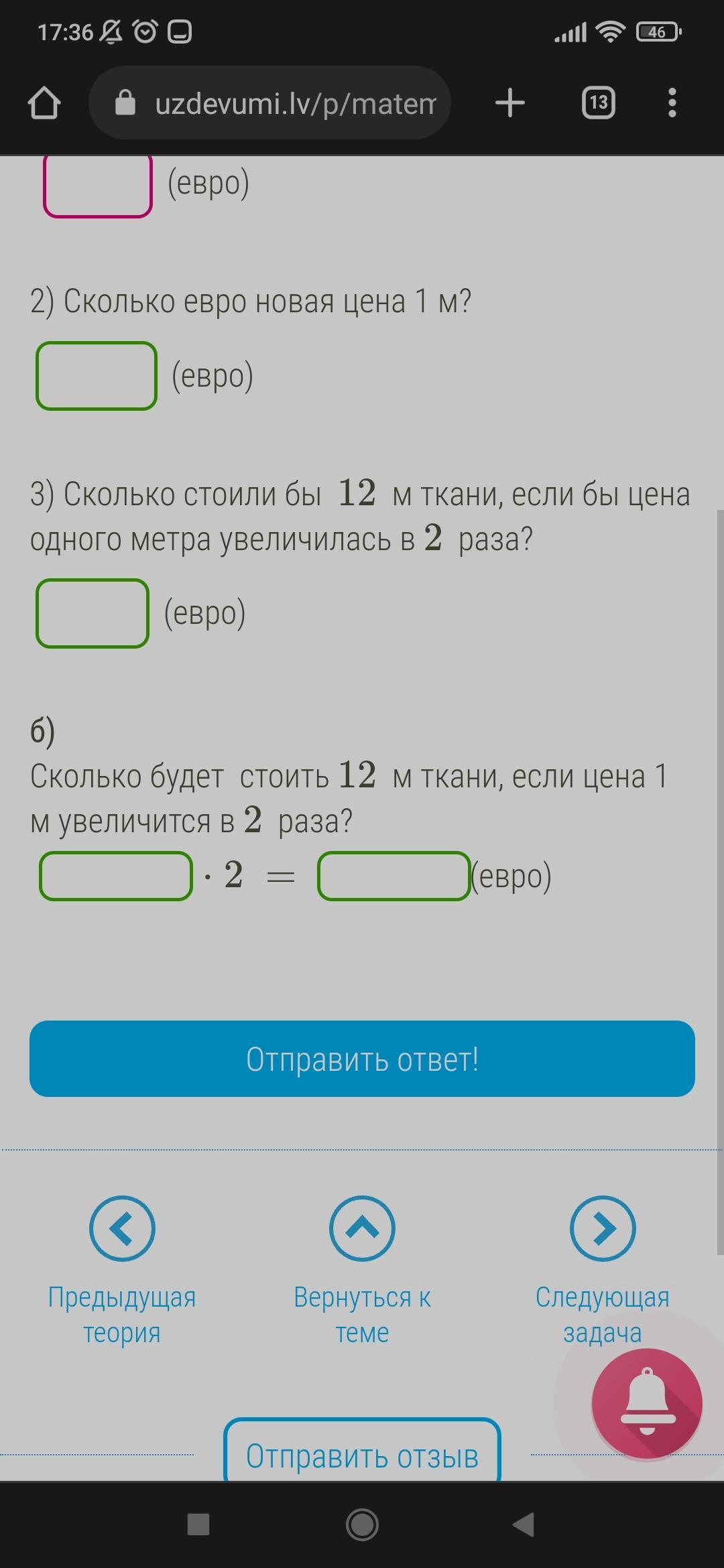 96•2=192 евро стоит 12 м ,если цена увеличится в 2 раза.