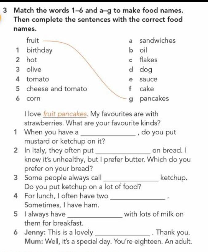 Birthday cake, hot dog, olive oil, tomato sauce, cheese and tomato sandwiches, corn flakes.