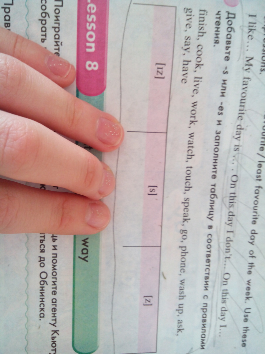 добавьте -s. или -es и заполните таблицу в соответствии с правилами чиения