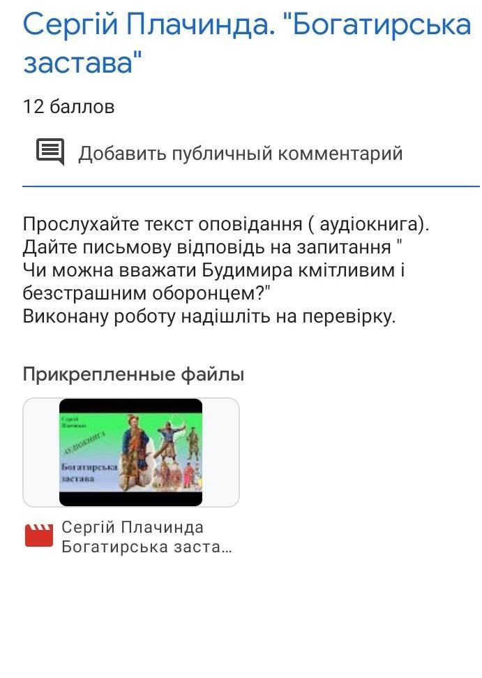 Прослухайте текст оповідання ( аудіокнига). Дайте письмову відповідь на запитання Чи можна вважати Будимира кмітливим і безстрашним оборонцем?" Виконану роботу надішліть на перевірку.