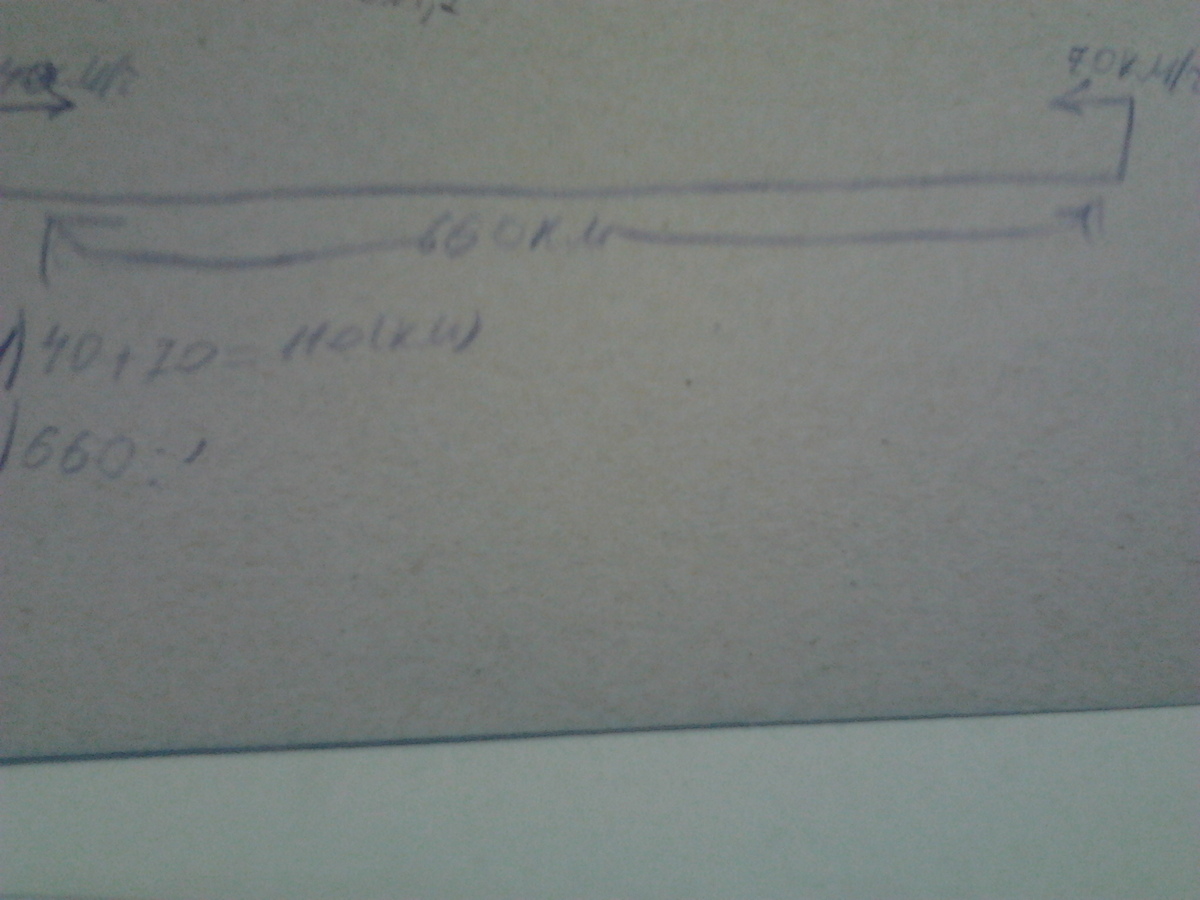 Два поезда выехали одновременно навстречу друг другу со станций,находящихся на расстоянии 660 км.Один поезд движется со скоростью 40 км/ч, другой- 70 км/ч.Через сколько часов поезда встретятся? На каком расстоянии от каждой из станций отправления произойдет встреча?