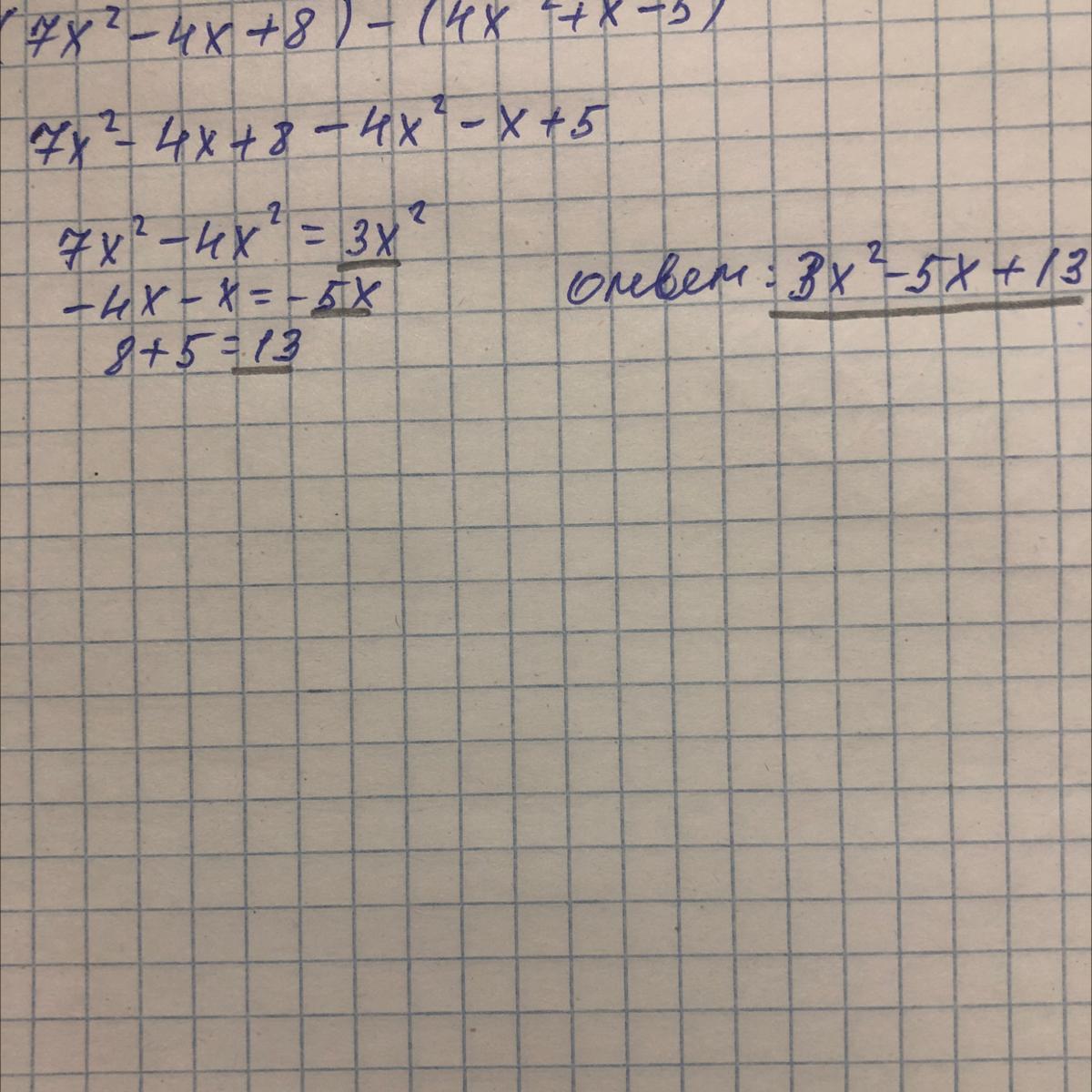 ответ: 3х^2-5х+13