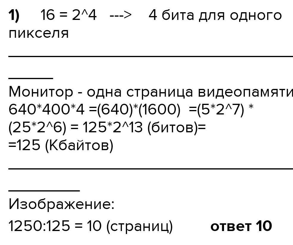 монитор работает с 16 цветной палитрой в режиме 640х400 пикселей какой объем видеопамяти (в килобайтах) потребуется для хранения изображения