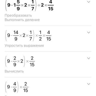 В общем такое решение выходит. После вычисления получится: 77/9 * 2/15 = 154/135 ( 1 *19/135)