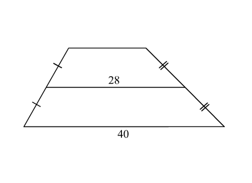 Средняя линия трапеции равна 28, большее основание равно 40. Найдите меньшее основание трапеции.