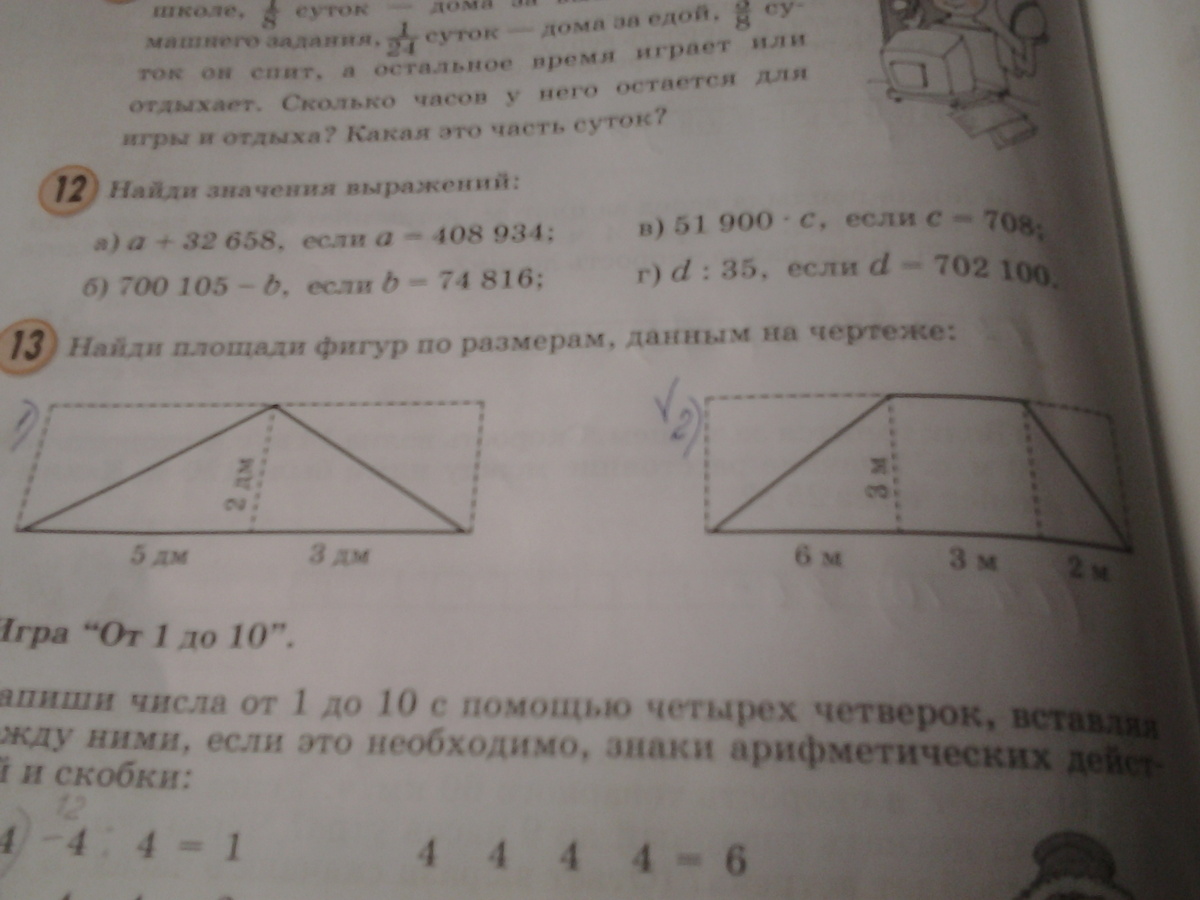 трапецию можно разделить на три части-два треугольника и квадрат, треугольники у нас входят в прямоугольник, площадь прямоугольника, как известно, S=ab, то есть площадь 1 прямоугольника 6*3=18, чтобы найти площадь треугольника площадь этого прямоугольника делим на 2, т.е. 18/2=9, теперь так же ищем площадь 2 прямоугольника (6 м2), а треугольника будет 3м2, теперь складываем: площадь треугольника 1 (9м2)+2 треугольника(3)+площадь квадрата(3*3)=21