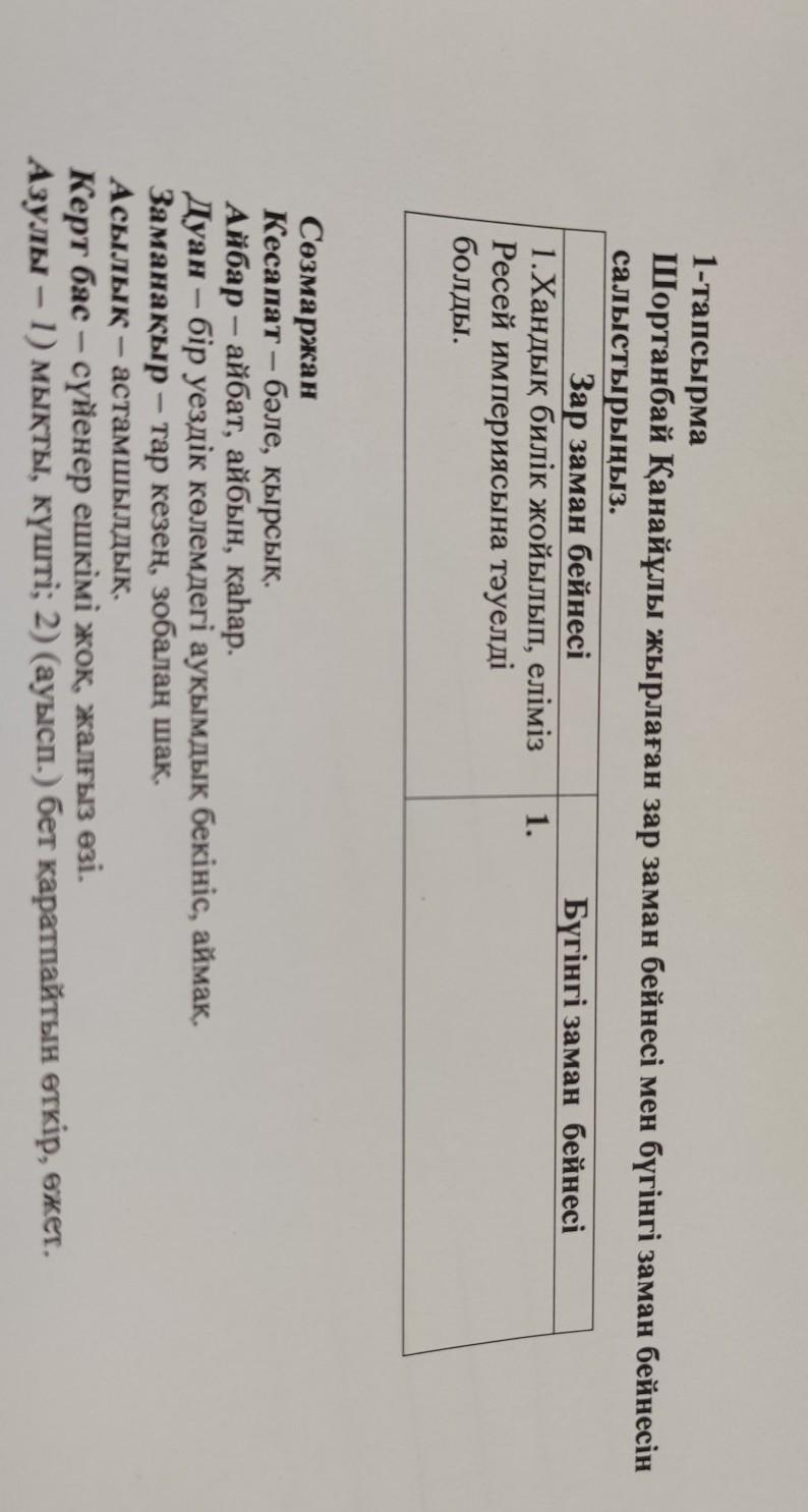Шортанбай Қанайұлы жырлаған зар заман бейнесі мен бүгінгі заман бейнесін салыстырыңыз