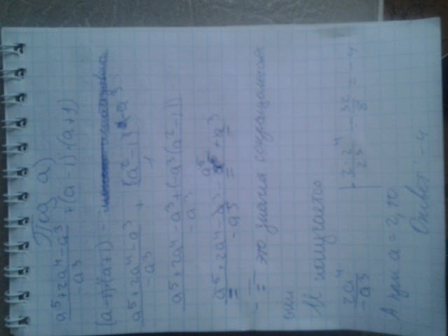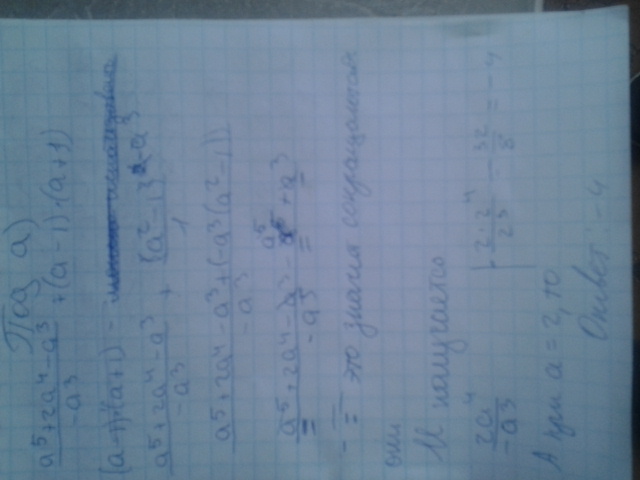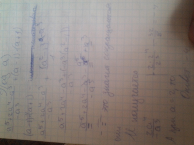 1) решите ( а в 5 степени+2а в 4 степени-а в 3 степени):(-а в 3 степени)+(а-1)*(а+1)