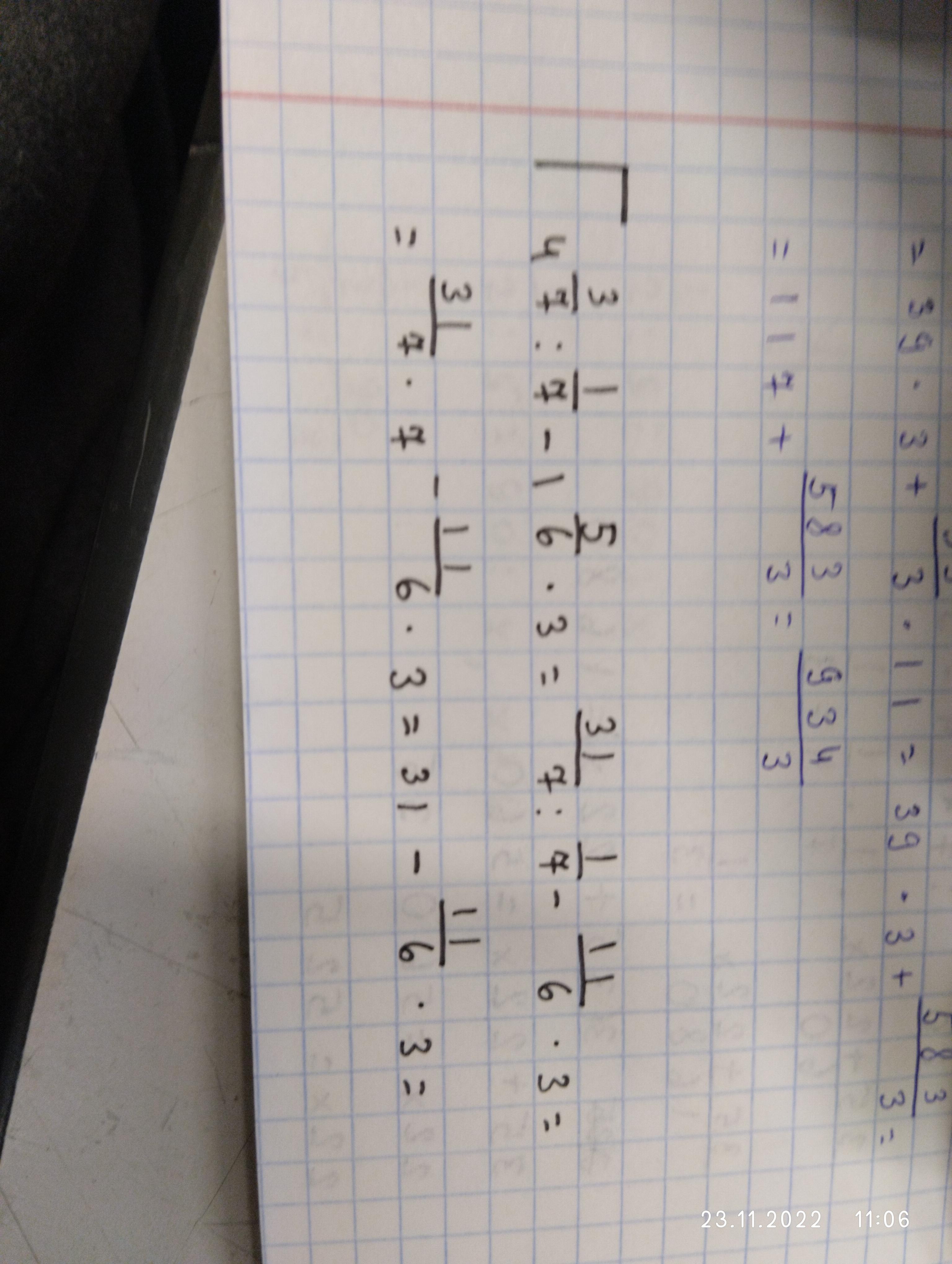 4 3/7 : 1/7 - 1 5/6 * 3 =