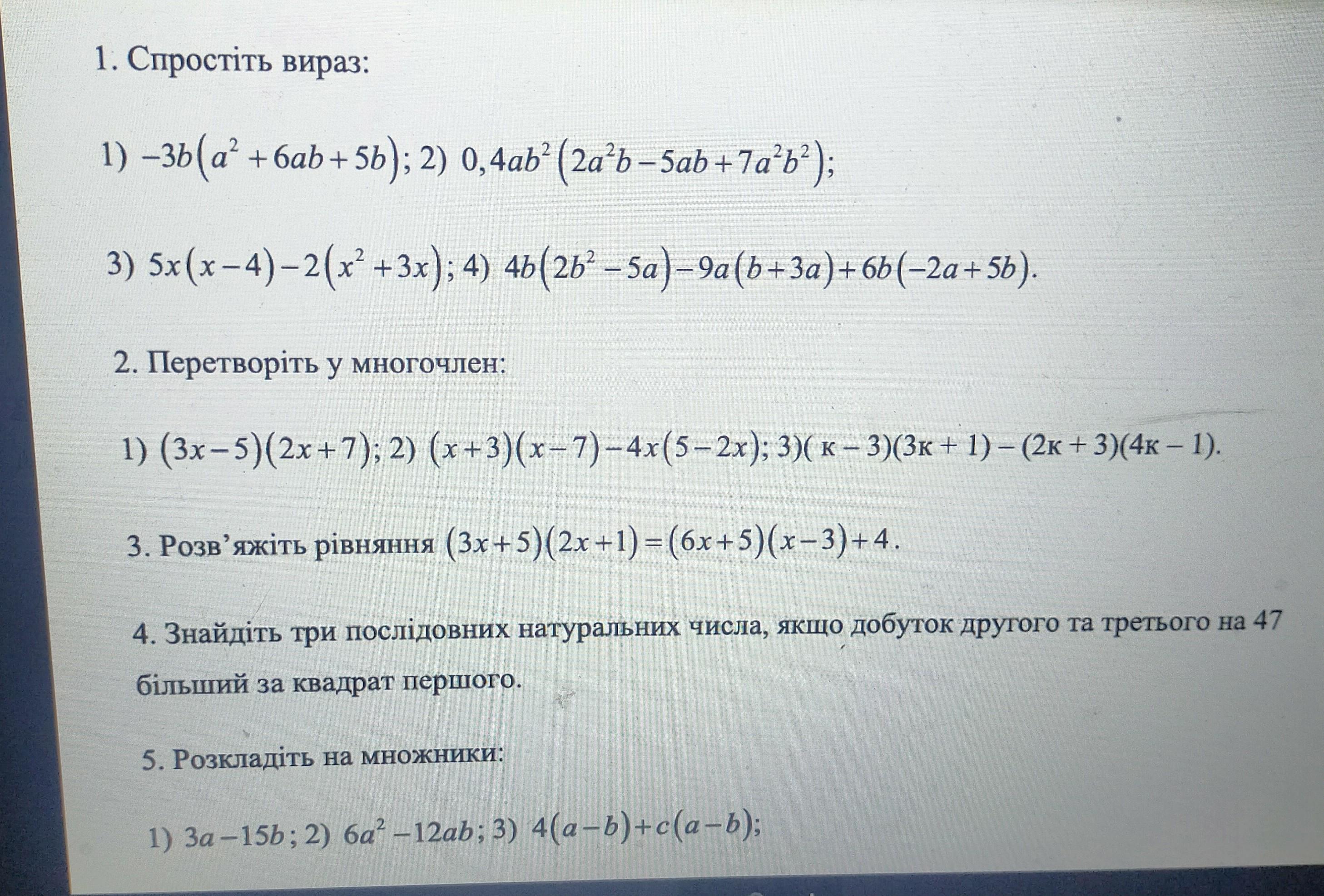 3)5x2 -20x -2x2 -6x = 3x2 - 26x