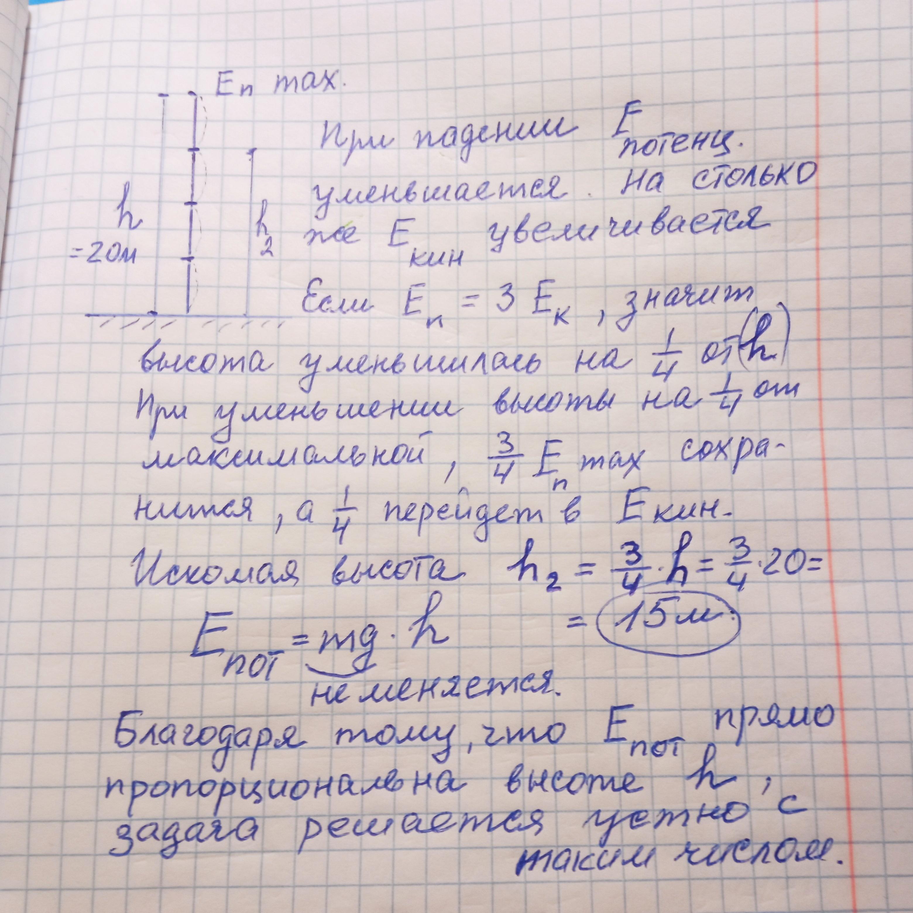 Кулька вільно падає з висоти 20м. На якій висоті від поверхні землі її потенціальна енергія втричі більша за кінетичну.