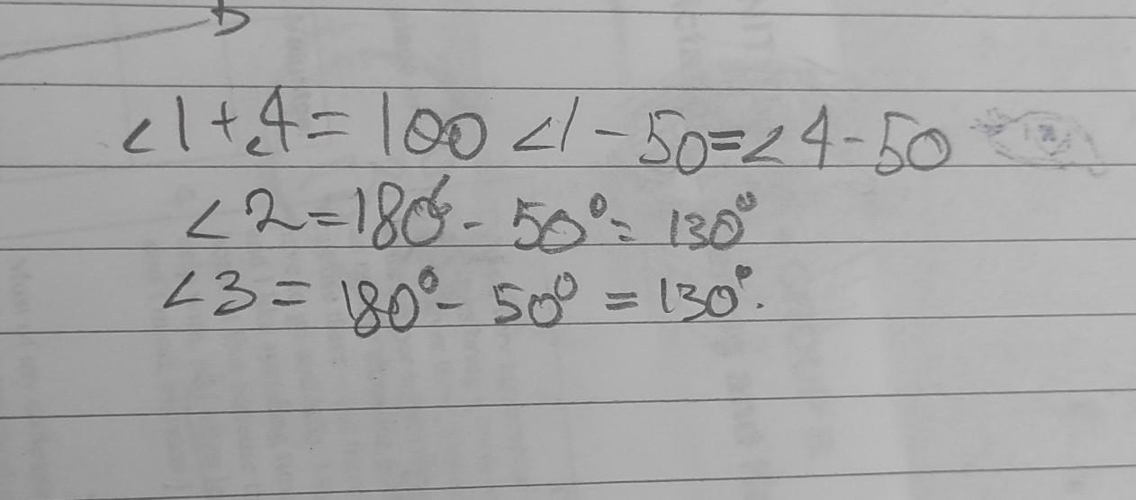 кут 3=4 тоді кут 3= 180-50=130 як й кут 4=180-50=130