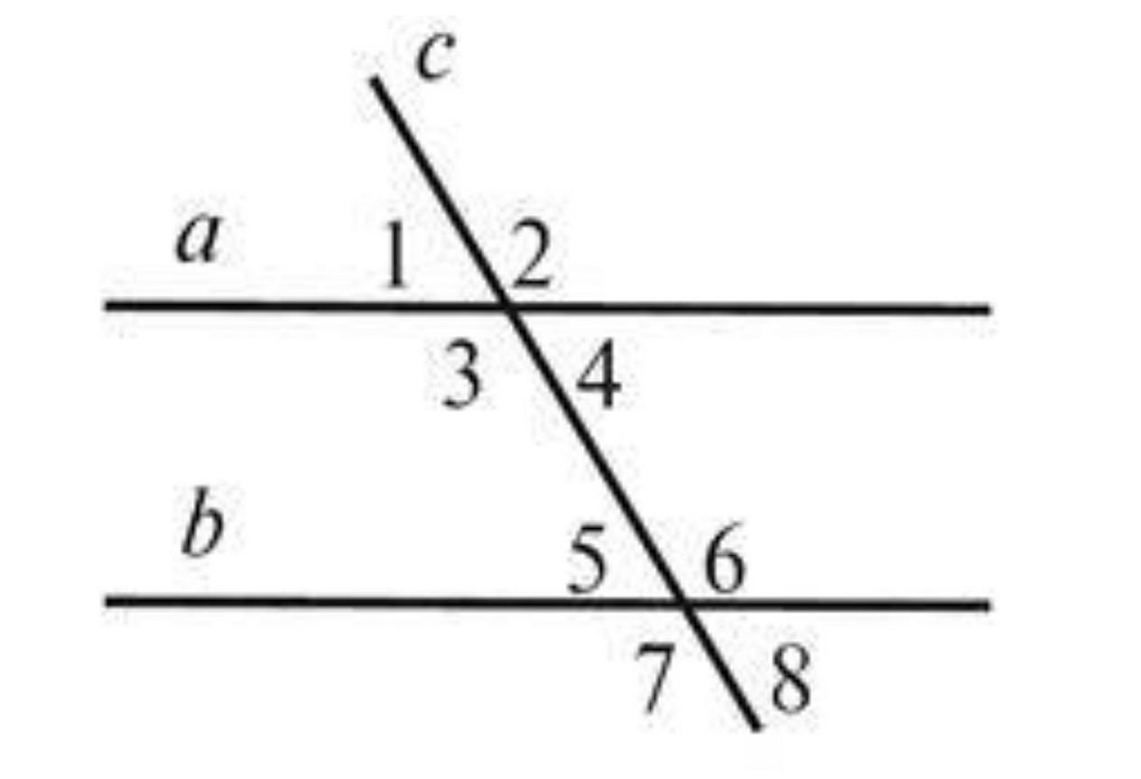 При перетині паралельних прямих a i b січною c утворюються такі пари кутів: